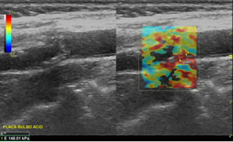 La estenosis carotídea (CAS) es una causa importante de accidente cerebrovascular (ACV). En pacientes asintomáticos, la decisión de indicar endarterectomía sigue siendo desafiante, ya que el grado de estenosis por sí solo no refleja adecuadamente el riesgo real. La vulnerabilidad de la placa —asociada a componentes blandos y mayor propensión a ruptura— se vincula con mayor riesgo de eventos, pero su evaluación no invasiva sigue siendo un reto. En este contexto, estudios recientes han explorado la utilidad de la SWE, en combinación con otros parámetros fisiológicos como el barorreflejo, para mejorar la caracterización de la vulnerabilidad.